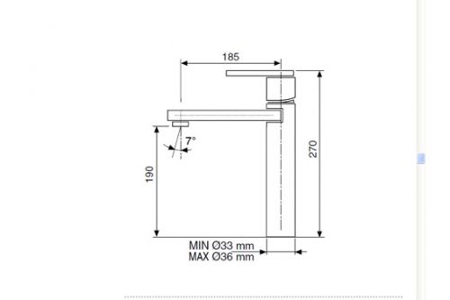 Длина излива 185 мм