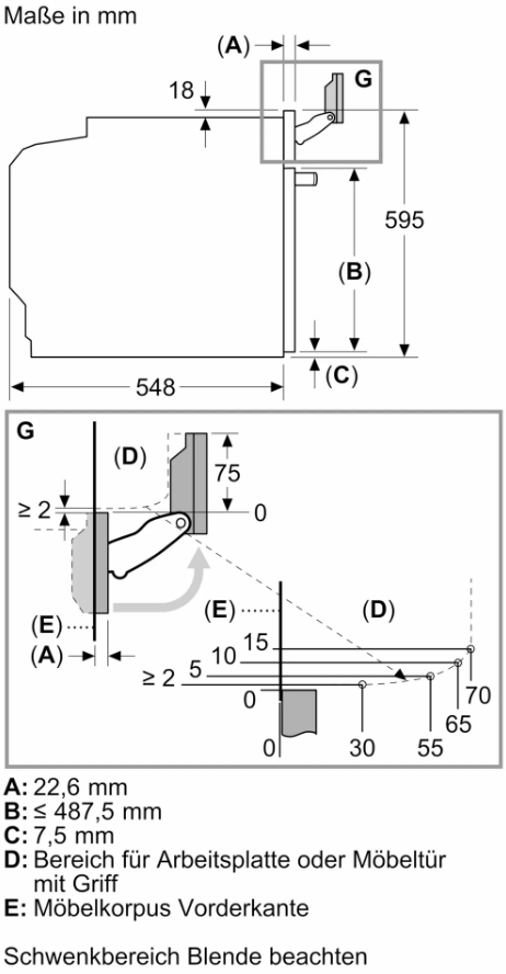 • Размеры ниши для встраивания, см (В х Ш х Г): 58.5-59.5 х 56-56.8 х 55