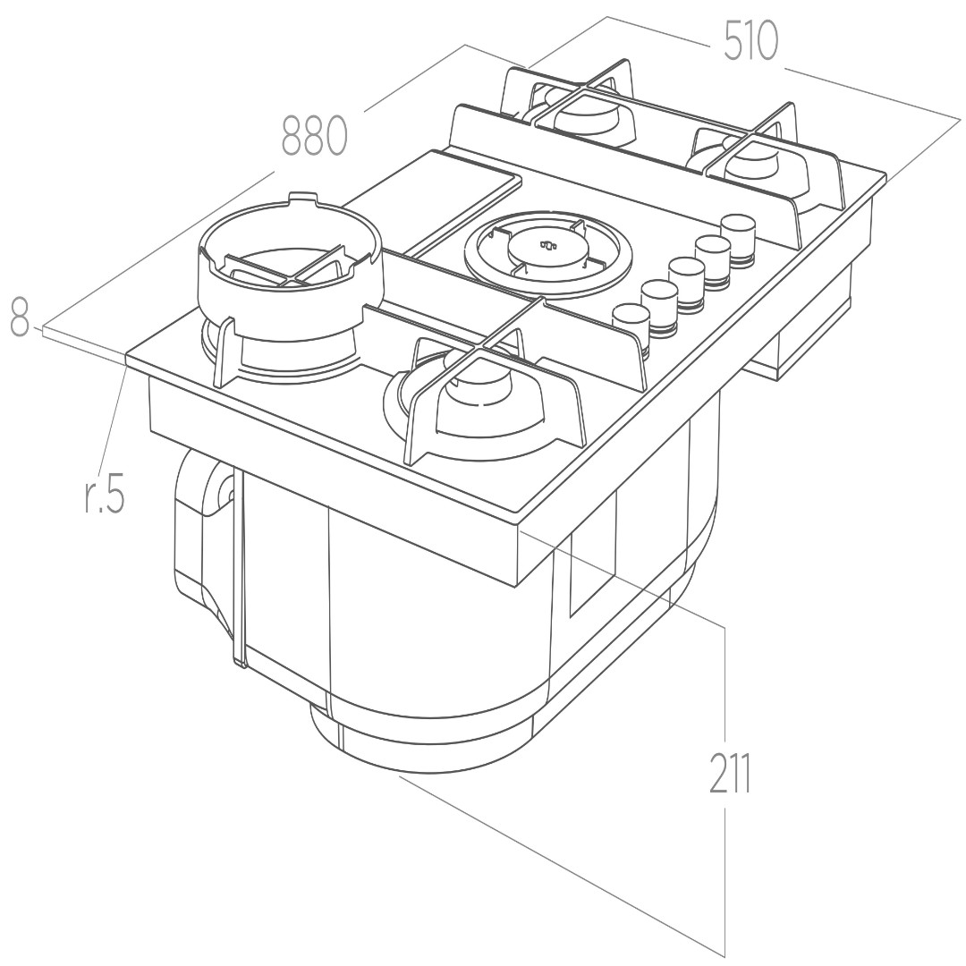 Чугунные элементы сочетают в себе эстетику и функциональность, а крестообразные, закрытые и плоские решетки гарантируют устойчивость кастрюль и сковородок, обеспечивая удобство их перемещения по всей варочной поверхности. Чугунная крышка зоны фильтрации становится оригинальной опорой, опциональная подставка для вока расширяет возможности вариаций приготовления. Встроенная вытяжка очищает воздух от дыма и неприятных запахов автоматически, благодаря комбинированному фильтру для жира, запаха и влаги, обеспечивающему максимальную эффективность и простоту обслуживания.