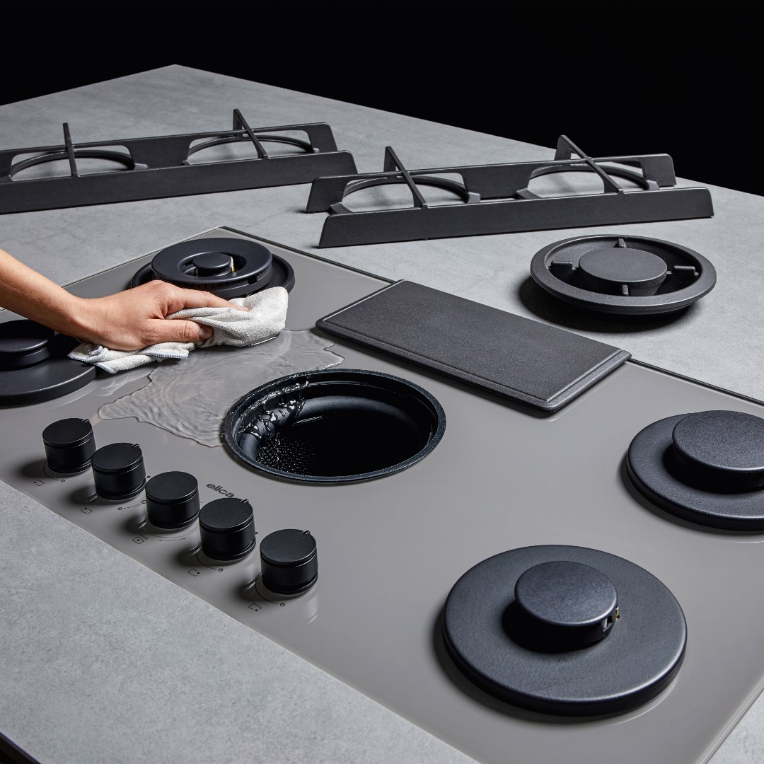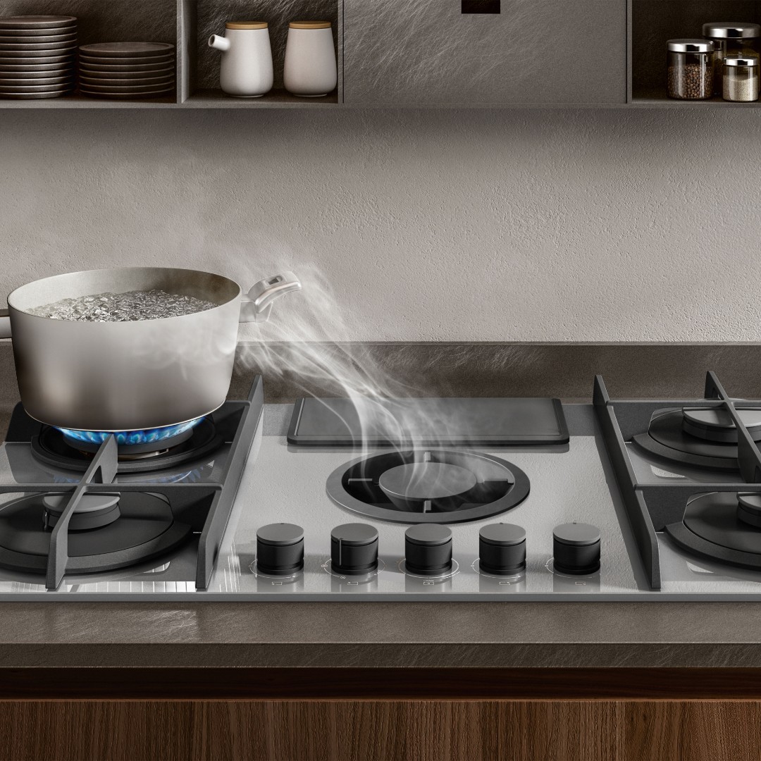 Магия огня, высокая производительность, современные технологии. Наконец-то появилась первая газовая варочная панель, сочетающая аспирацию снизу и классическое приготовление пищи. Максимальная безопасность гарантирована: данный прибор соответствует всем нормам в отношении эффективности и мощности пламени, не жертвуя при этом качеством аспирации.