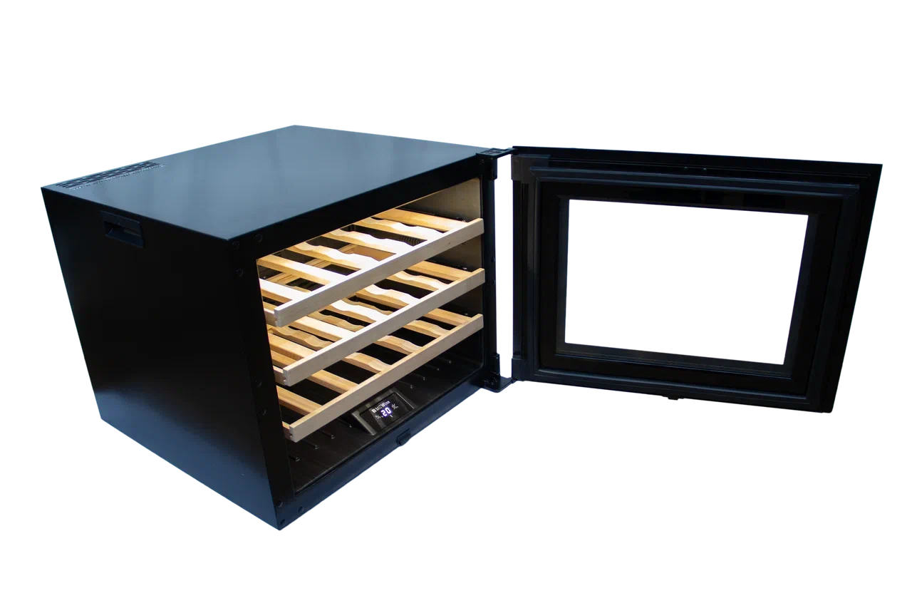 - Реверсивная дверь, которая позволяет устанавливать два винных шкафа рядом;